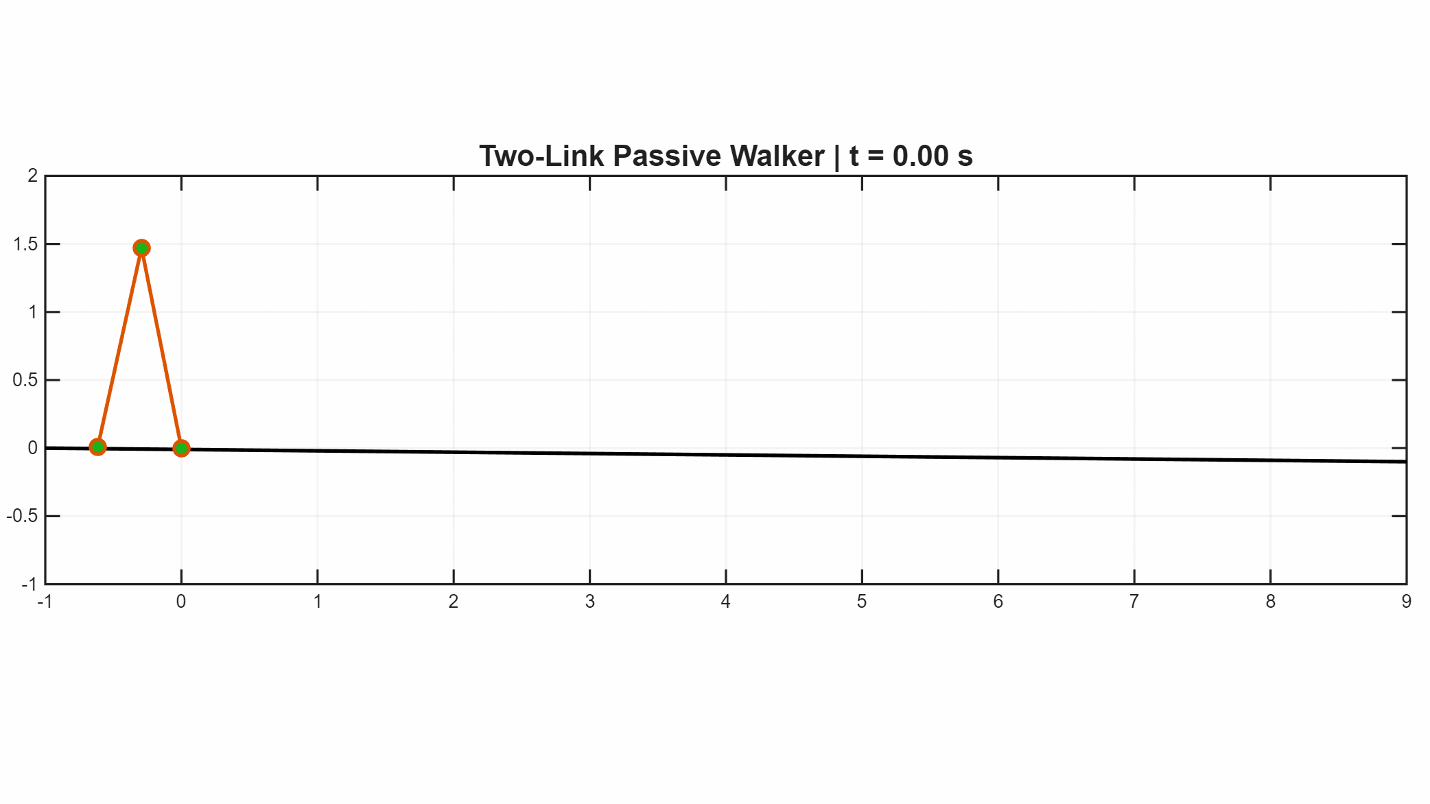 Developed a hybrid simulation for a 'compass gait' passive walker, implementing continuous dynamics, discrete impact mapping, and Poincaré map analysis to verify gait stability.