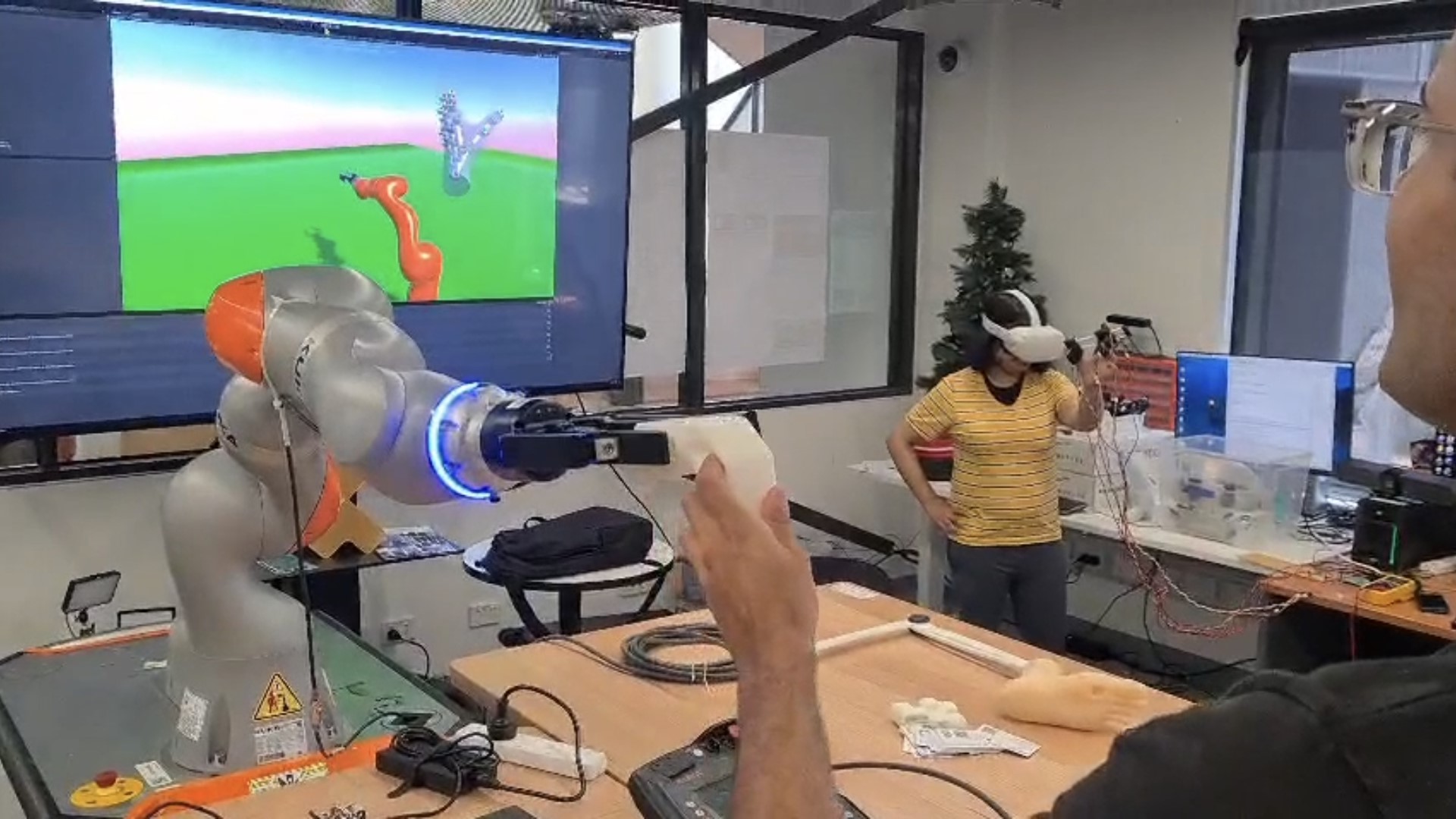 Developed an immersive telerobotic system that enables precise real-time control of a KUKA robotic arm using VR hand-tracking and haptic feedback, enhancing remote manipulation through intuitive user interaction.
